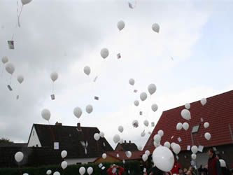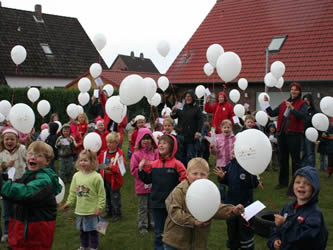 Zum Abschluss unser ersten Aktionswoche ließ jedes Kind einen „Kinder sind mehr wert“-Luftballon steigen.