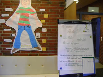 Über die jetzigen Rahmenbedingungen und die Forderungen konnten sich die Eltern im Eingangsbereich informieren.