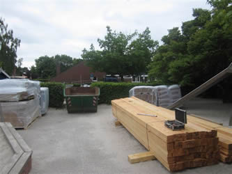 Unser Spielplatz am Kindergarten dient als Lager der Materialien.
