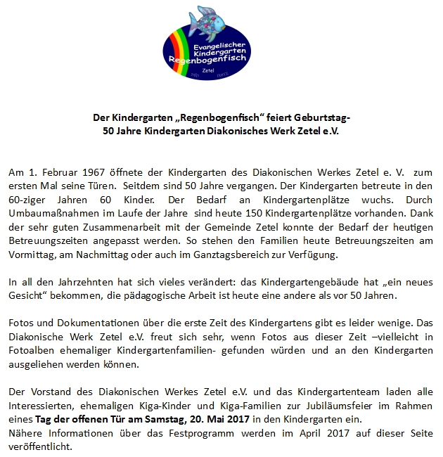 Der Kindergarten "Regenbogenfisch" feiert Geburtstag- 50 Jahre