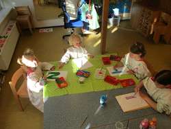 Gemeinsam haben die Kinder mit den ErzieherInnen eine Botschaft gestaltet.