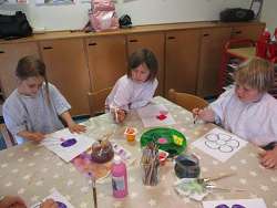 Über unsere Homepage und durch unsere Anrufe oder Briefe wissen die Kinder, was wir im Kindergarten machen. Die Kinder erhielten von uns die Aufgabe, ein Bild zu malen, was sie zu Hause erleben, was und wer ihnen fehlt. Daraus entstand eine große Bilderwand in unserem Flur.