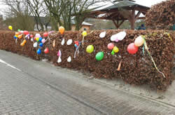Wir baten die Kinder, unsere Hecke mit Luftballons zu schmücken, damit der Kindergarten zum Rosenmontag bunt ist. Liebe Kinder; herzlichen Dank!