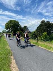 Buntgeschmückte Fahrräder, Musik und laute Fahrradklingeln: so ging es am Samstag, dem 3. Juli 2021 bei schönstem Sonnenschein vom Kindergarten los, um unsere langjährige Kollegin Monika Abrahams zu einer Fahrradtour abzuholen.
