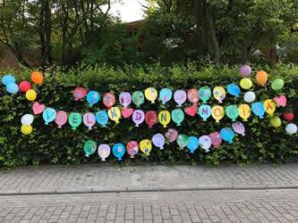 Doch bei einer Überraschung sollte es nicht bleiben: die Kinder ihrer Gruppe schmückten einige Tage vor den Ferien unsere Hecke mit einem „Dankeschön“ und gemeinsam mit je einem Elternteil wurde im Kindergarten „Auf Wiedersehen“ gesagt.