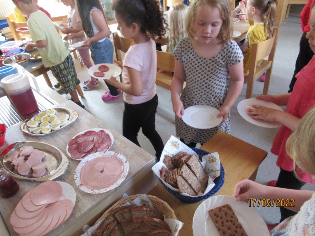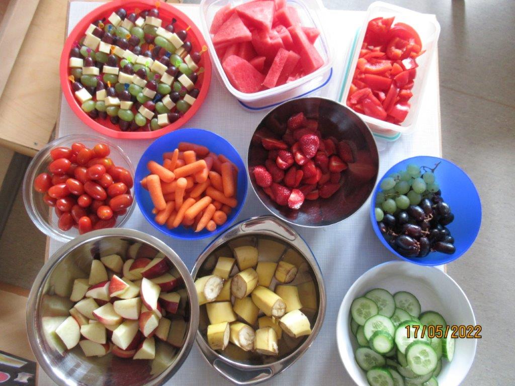 Lange mussten die Kinder durch die Corona-Pandemie auch im Kindergarten auf vieles verzichten. Nun kehren wir langsam aber sicher wieder zu gewohnten Abläufen zurück. So haben wir im Mai in den Gruppen wieder den „Buffet-Tag“ eingeführt. Jede Gruppe gestaltet diesen nach ihren Voraussetzungen. Einige Gruppen gestalten wieder einen „Buffet-Tag“, an dem jedes Kind der Gruppe etwas von Zuhause mitbringt und zu einem leckeren Buffet zusammengestellt wird. Jedes Kind darf sich nach seinen Wünschen bedienen.