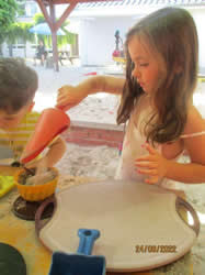 Bereits im August überreichte uns der Round Table Varel eine Matschküche für unseren Spielplatz.