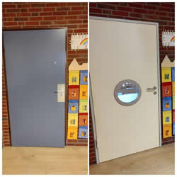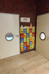 Nun- endlich- können wir uns über das neue Gesamtbild im Erdgeschoss freuen. Die neuen Gruppentüren sind eingebaut!