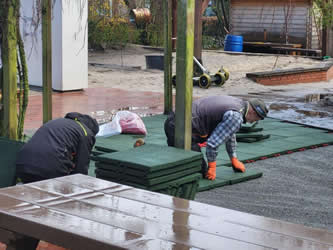 … die gesamte Fläche besteht nun aus Fallschutzmatten und die Kinder können die Spielfläche wieder gut nutzen ;)