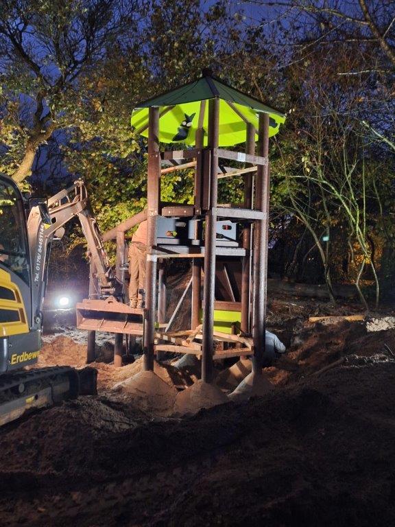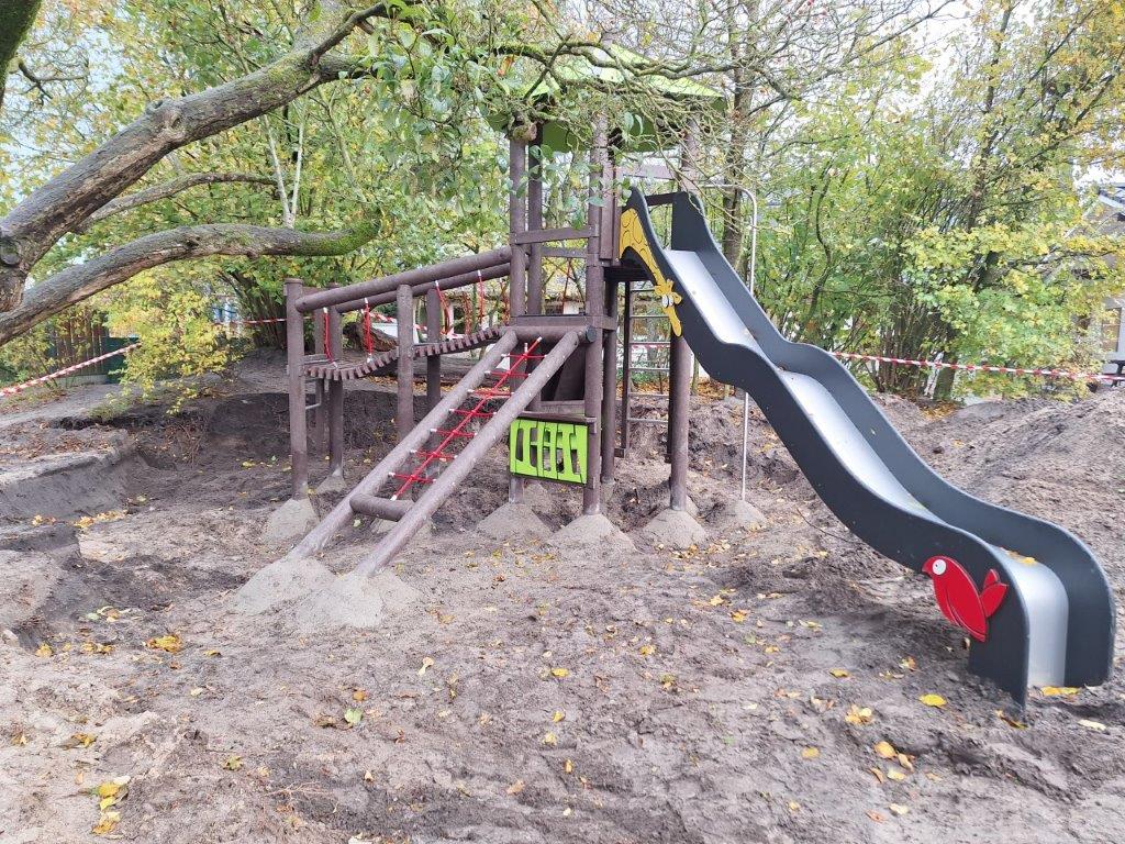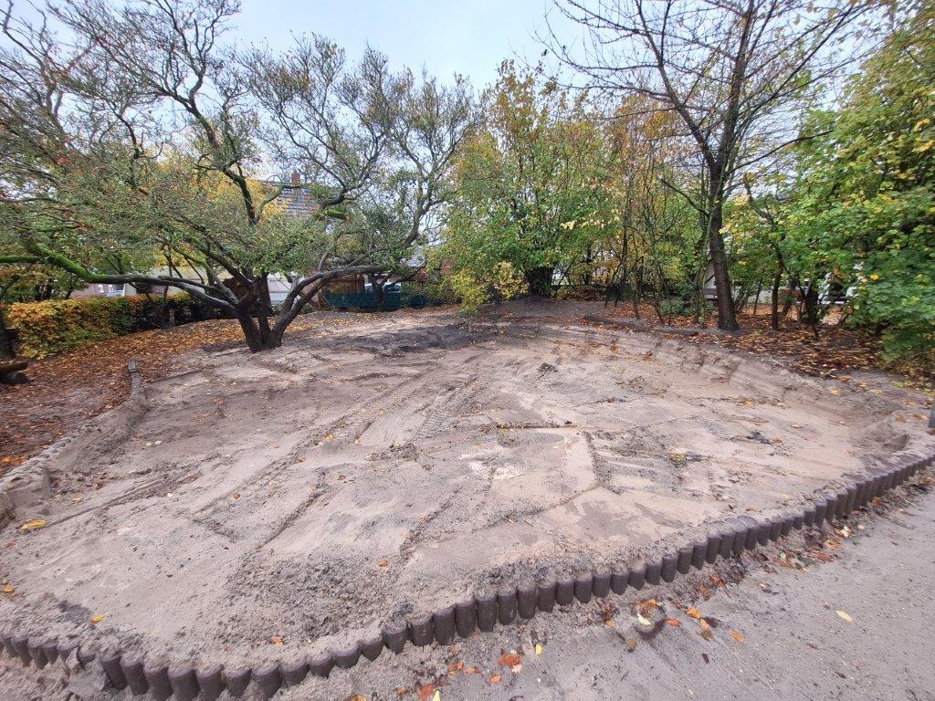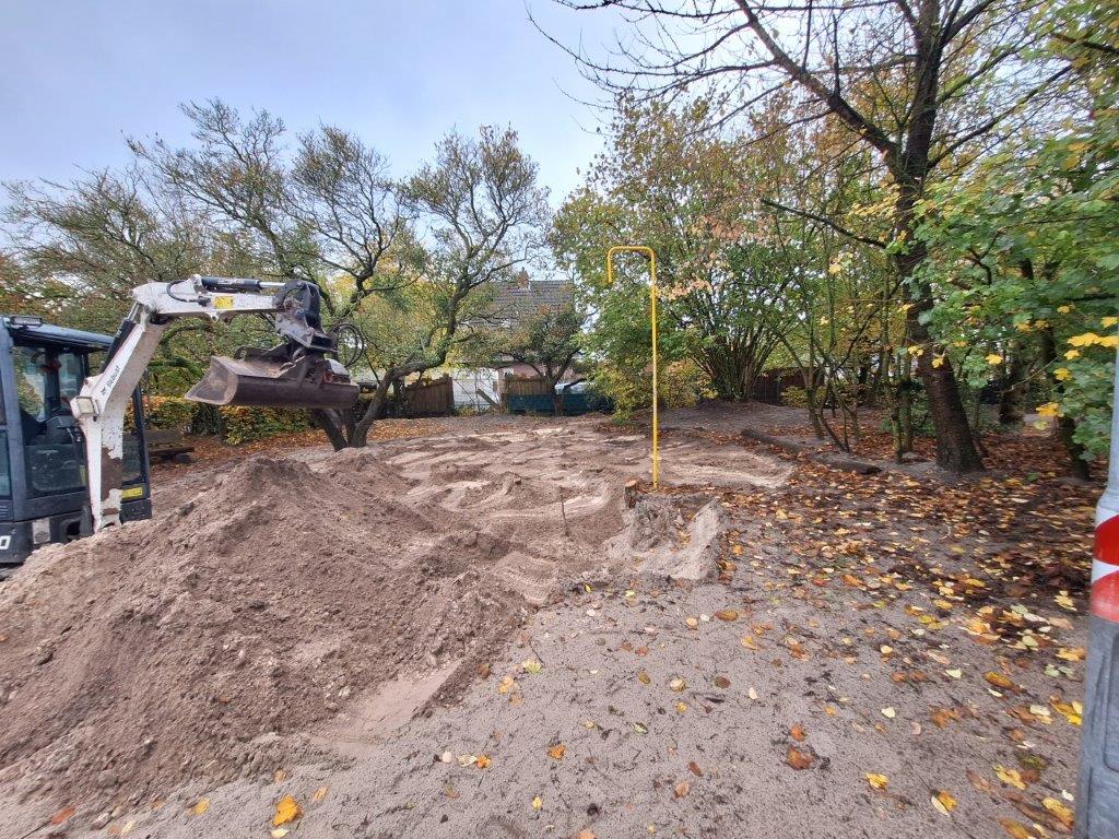 Der neue Spielturm sollte geliefert werden, doch vorher gab es noch einige Vorarbeiten: