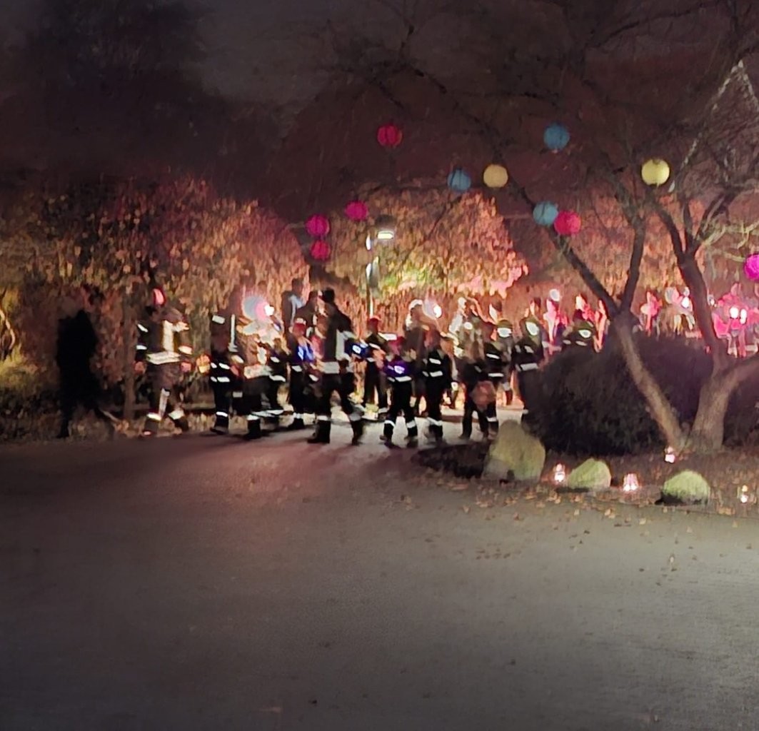 Das Wetter spielte in diesem Jahr wieder mit, so dass zahlreiche Familien zum Gottesdienst kamen und beim Laternenlauf dabei waren. Die Strecke führte uns über einen kleinen Teil des Zeteler Marktes (der sich zum Zeitpunkt noch im Aufbau befand) und endete im Rondell des Sankt-Martin-Heimes. Hier warteten die Bewohner*innen und Mitarbeiter*innen bereits auf ihren Besuch. Dieser konnte sich mit warmen Kakao oder Kinderpunsch aufwärmen und nebenher Martinshörnchen schlemmen.
