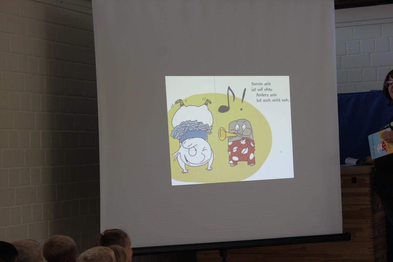 Die Kinder hörten und sahen die Geschichte von „Sorum und Anders“.